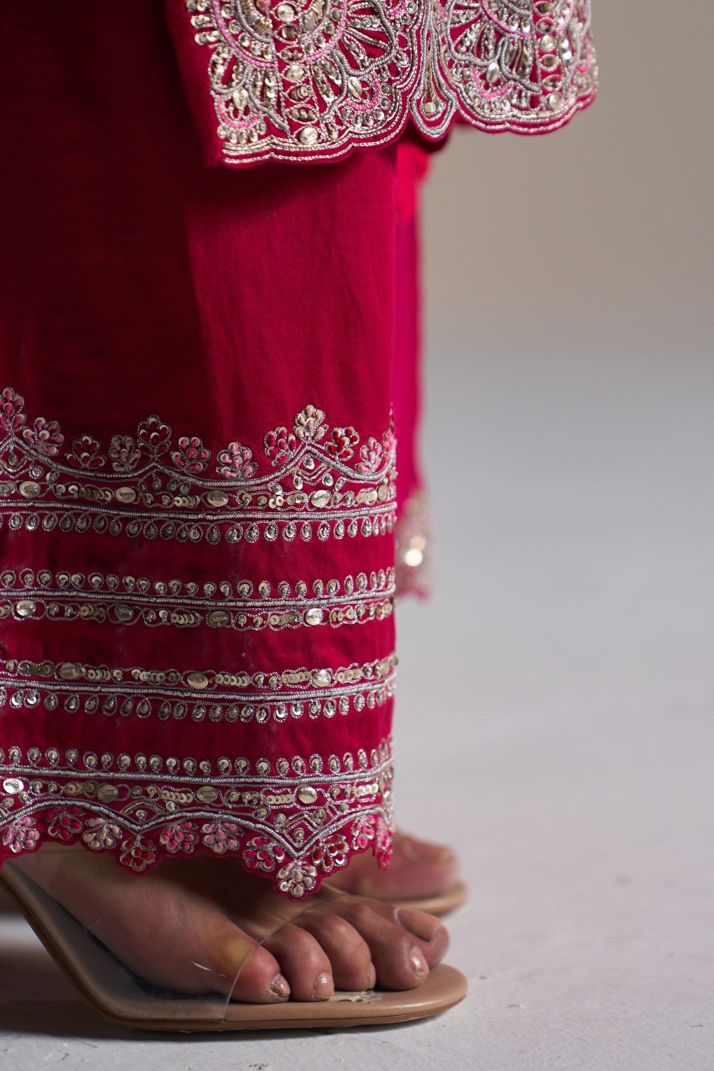 Handcrafted with zardozi, french knots, aari work and dori embroidery.